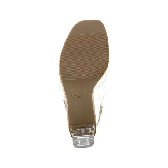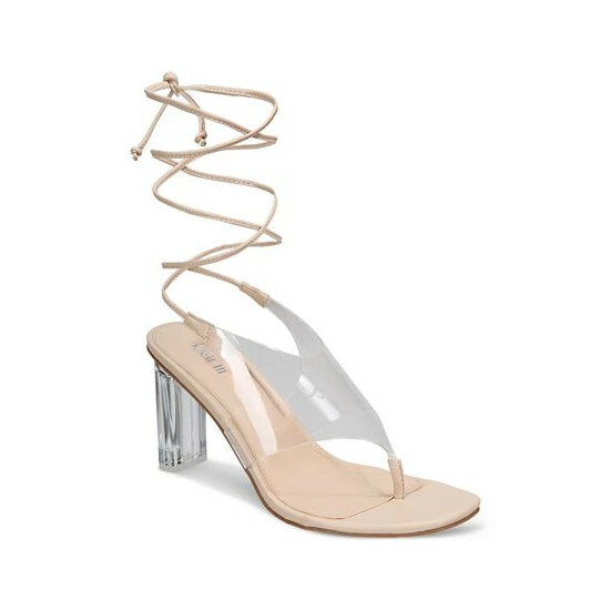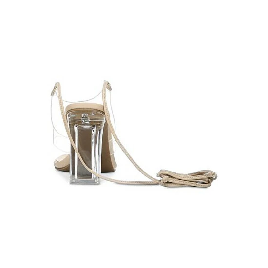 Bar III laces up a barely-there silhouette topping translucent heels and straps with elegant wrapping ankle ties.