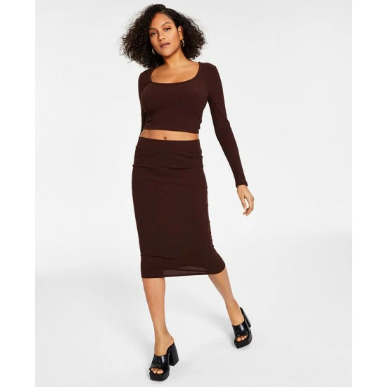 Worn together or styled with complementary pieces, this cropped top and midi skirt look from Bar III adds a modern-chic look to your wardrobe.