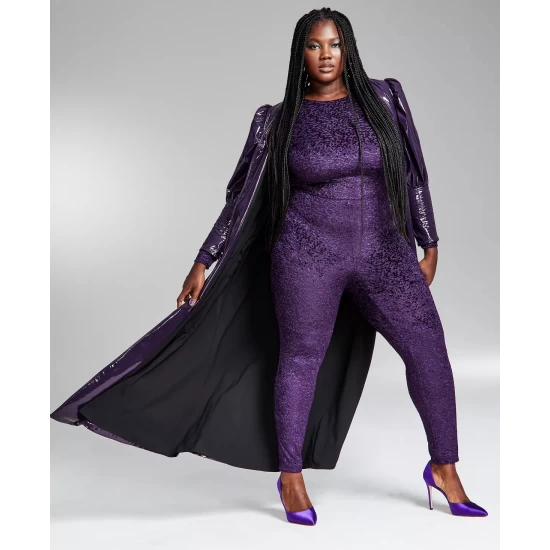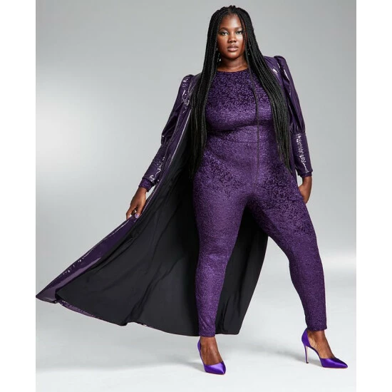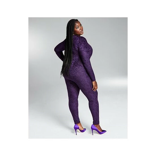 Turn heads as you hit the dance floor in this shimmering plus size cat suit from Bar III.