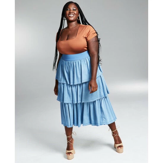 Bar III’s plus size maxi skirt is perfect for work or play and looks great with your favorite cropped top or tank.
