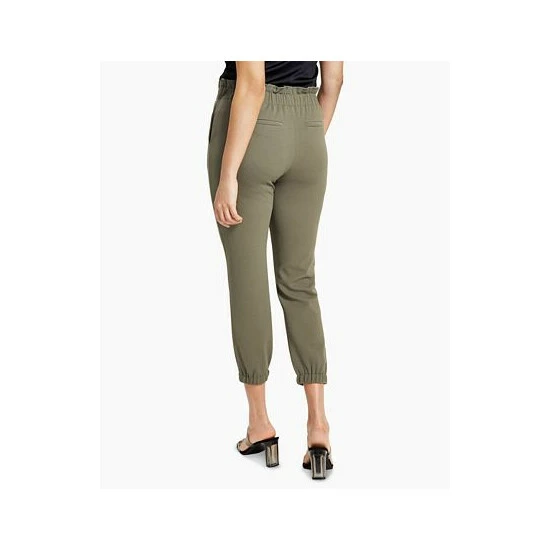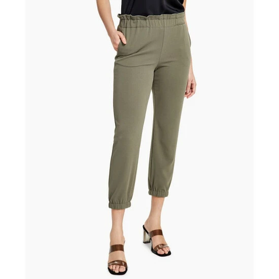 A favorite sporty style is updated with a paperbag-style waistline and a fitted silhouette in these knit joggers from Bar III.