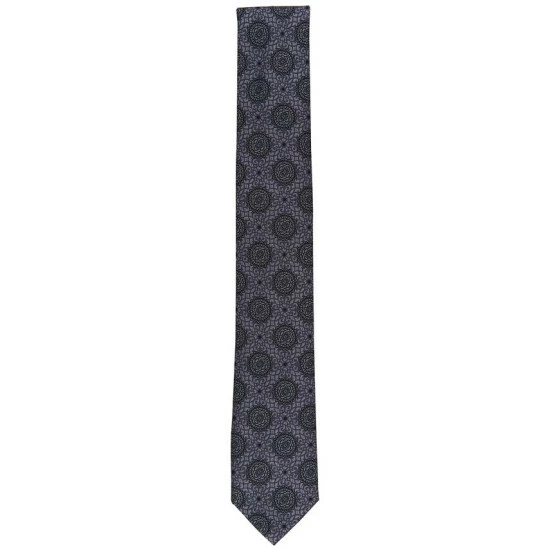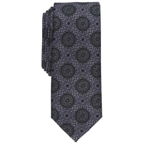 Enhance your dressed-up style with the skinny silhouette and allover medallion print of this necktie from Bar III.
