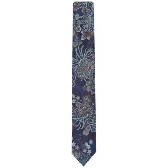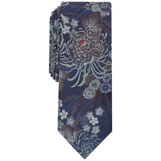 Complete your dress style in an inspired way with the elaborate chrysanthemum motifs and subdued-tones of this handsome and modern skinny tie by Bar III.