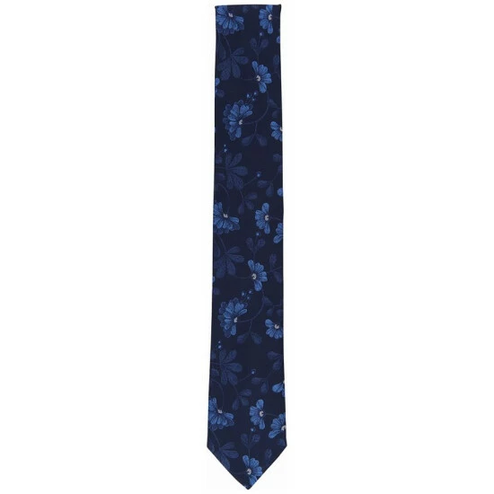 Patterned with a blooming floral design, Bar III’s modern necktie is designed with a skinny blade that accentuates the chest and tops off your formal look with a vivacious accent.