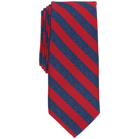 Color-rich darting stripes give this skinny two-inch tie from Bar III an elegant, collegiate-inspired look that finishes off your formal attire with some energy and authority.