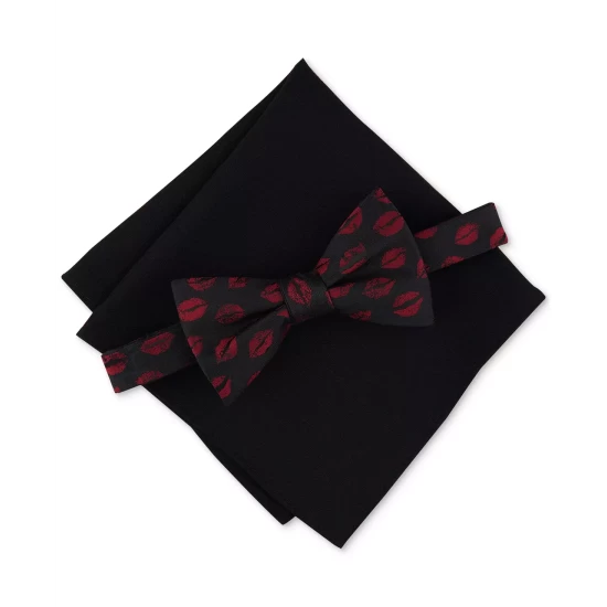 Bring some feisty energy to your next black-tie event with this bow tie and pocket-square set from Bar III, adorned with color-rich lips that add a lighthearted flourish to your look.