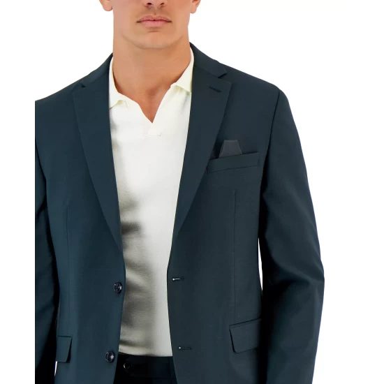 Bring rich color to your refined look with the bold burgundy tone of this slim-fit suit jacket from Bar III.