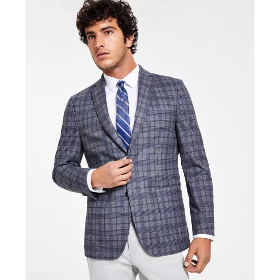 A classic crisp-tone check combines with a modern slim-fit and a casual patch pocket design to offer the best of all worlds on this Bar III knit blazer.