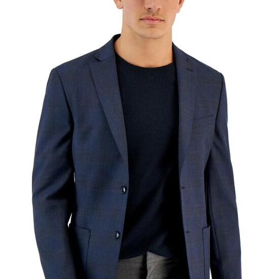 Bar III offers timeless appeal and comfort with the modern style of this Men’s Slim-Fit Navy Windowpane Knit Blazer.