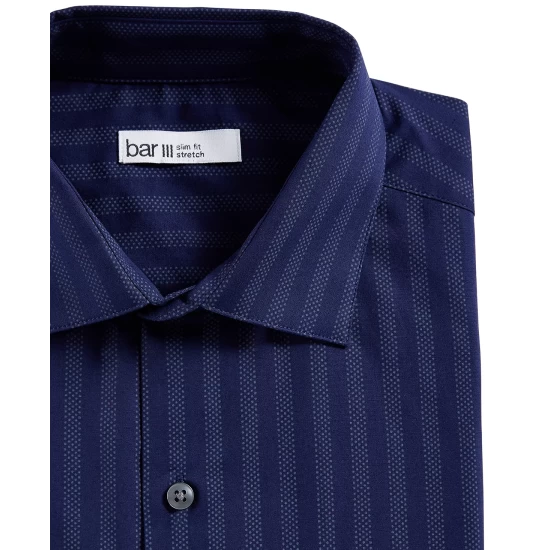 Designed with a distinctive dotted-stripe pattern and a perfect length for untucked wear, this slim-fit dress shirt from Bar III brings contemporary style and comfort to your button-down look.