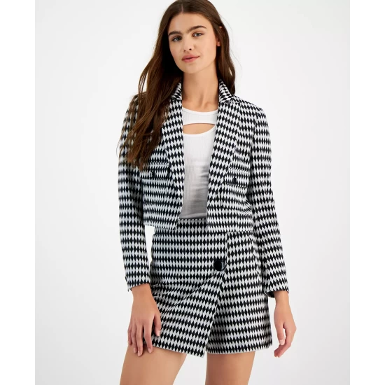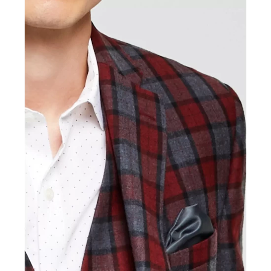 Make a stylish entrance at your next sophisticated soirรฉe with the streamlined silhouette and striking plaid of this attention-grabbing suit jacket from Bar III.