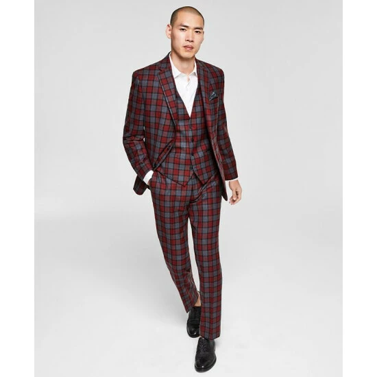 Make a stylish entrance at your next sophisticated soirΓ©e with the streamlined silhouette and striking plaid of these attention-grabbing suit separates from Bar III.