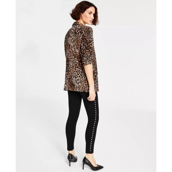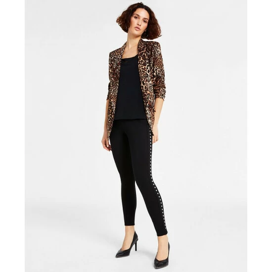 Always look your stylish best with this animal print blazer, zip-back top and co-ordinated studded leggings from Bar III.