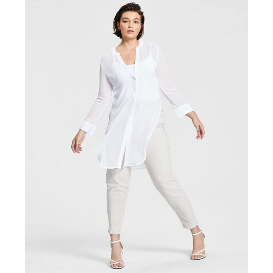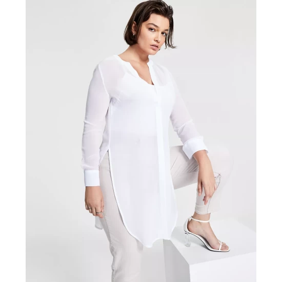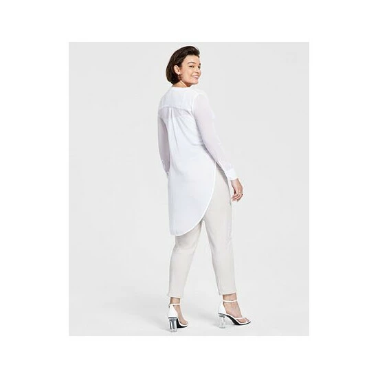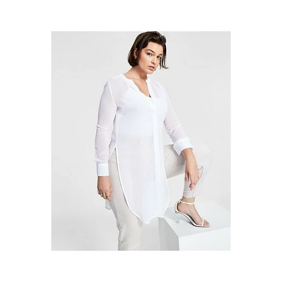 Sheer elegance from Bar III. This petite tunic top is designed for layering with a long, side-slit hem and a filmy, floaty fabric.