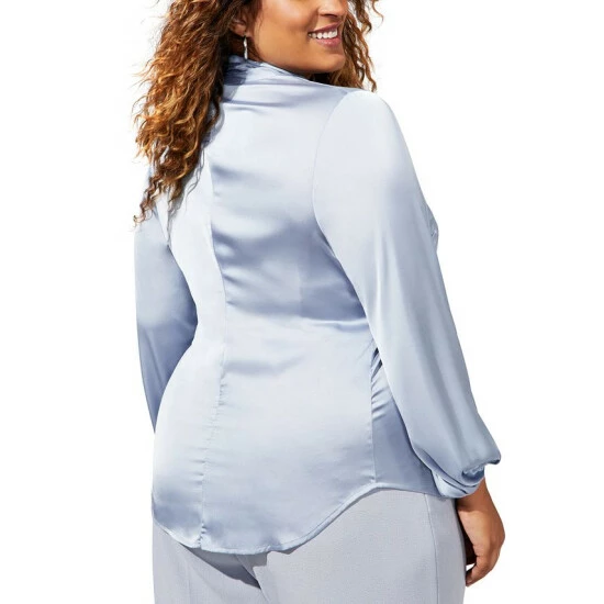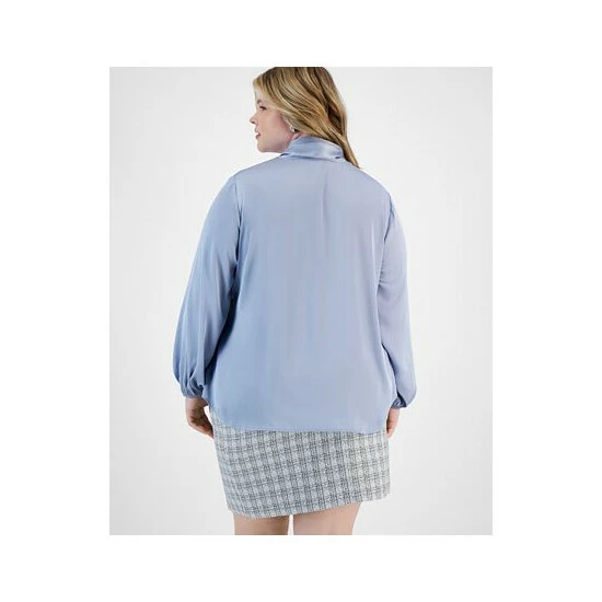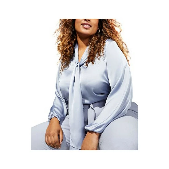 Be boardroom ready in this plus size blouse by Bar III, elevated with bow-tie detail, lending a polished edge to versatile look.