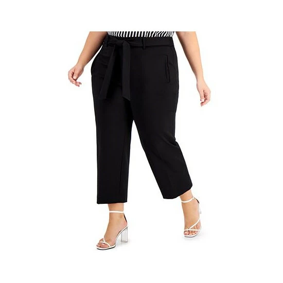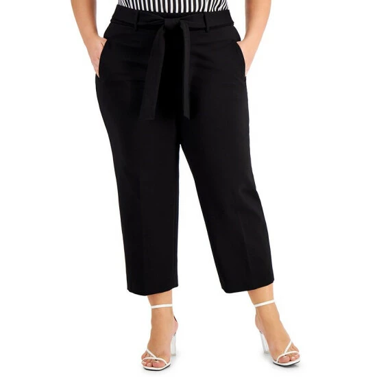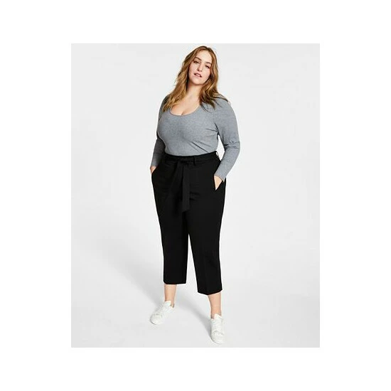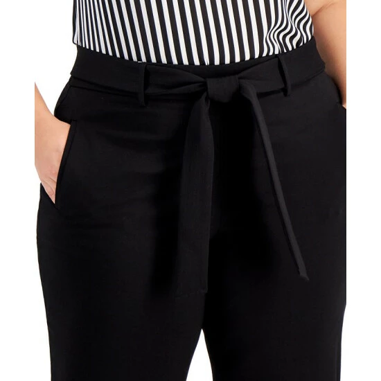 Create a fresh look that’s ready for the office in these plus size pants from Bar III, in a cropped silhouette and finished with a matching tie.