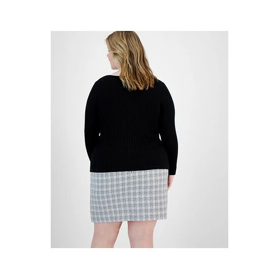 Complimented with slimming vertical ribbing throughout, this Bar III sweater is finished with a unique twist neck design and cut-out detail at the chest.