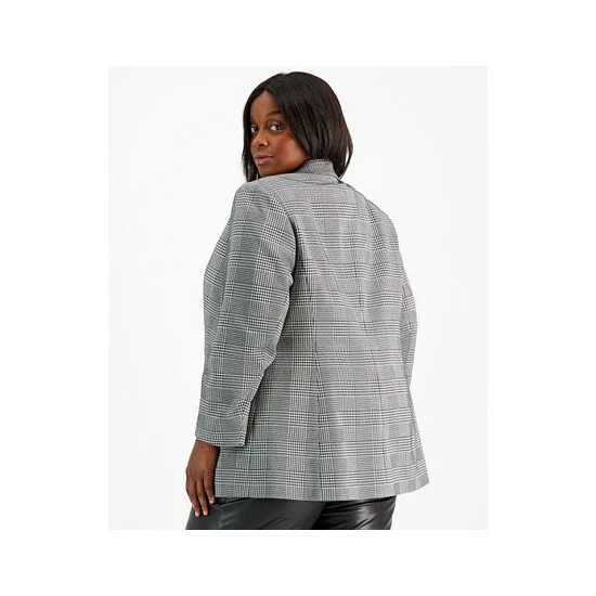 Look polished instantly with Bar III’s sophisticated double-breasted blazer, finished in a classic plaid print.