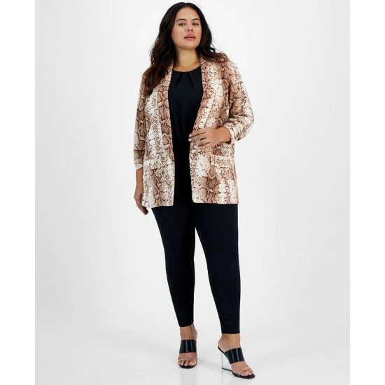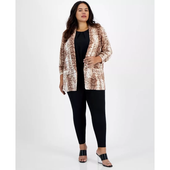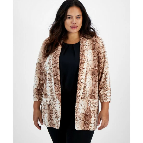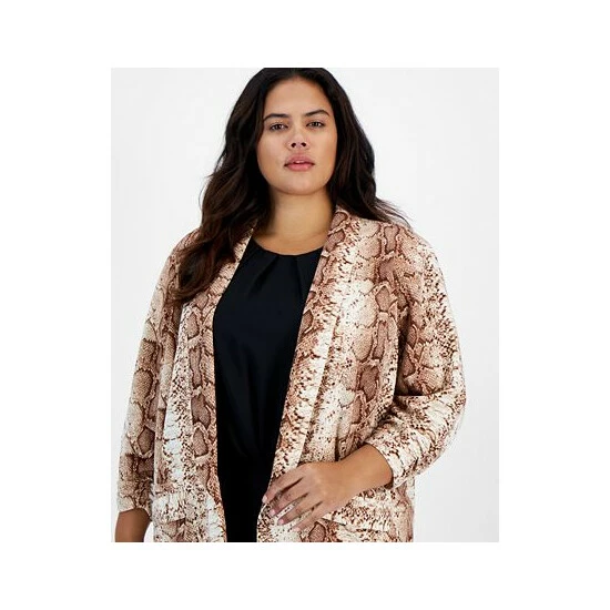 A fierce and on-trend snakeskin print brings a mega dose of style to this plus size blazer from Bar III.