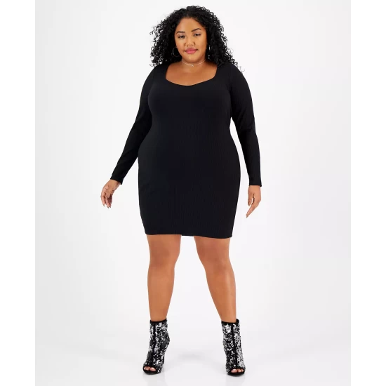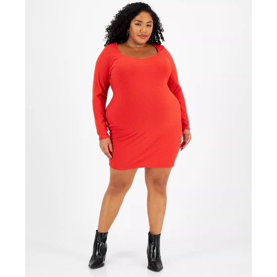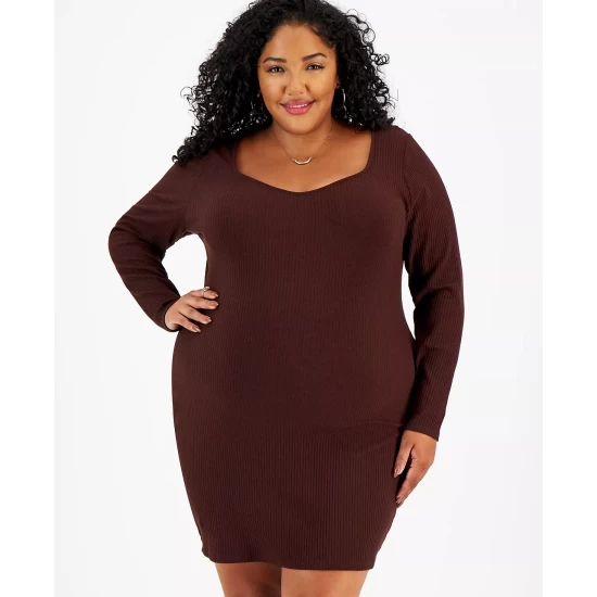 Show off your curves in a ribbed plus size bodycon dress from Bar III, styled with a sweetheart neckline and a mini-length hem.