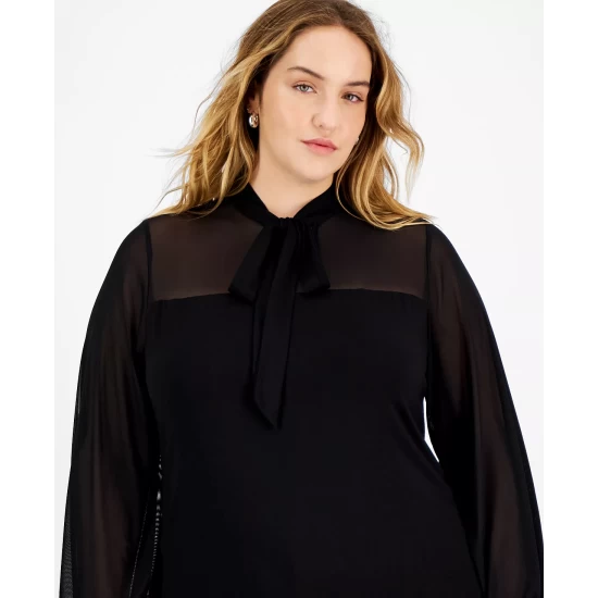 A delicate tie at the neckline adds feminine flair to this work-ready plus size blouse from Bar III.