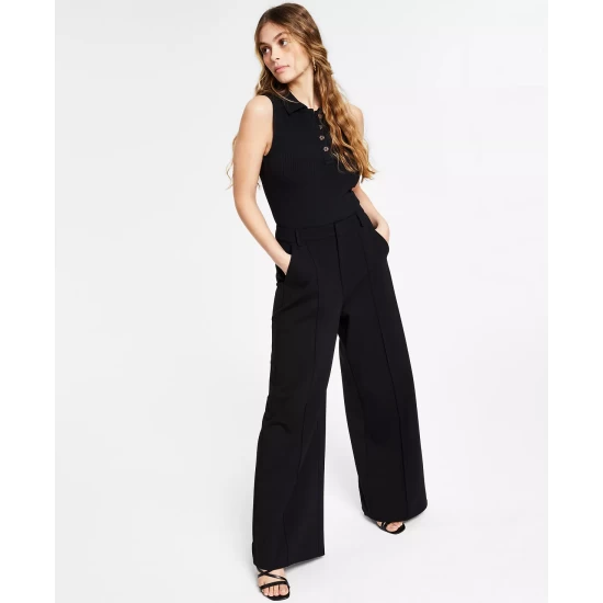 Soft and stretchy ponté-knit shapes up smartly in the wide-leg design of these Bar III pants.