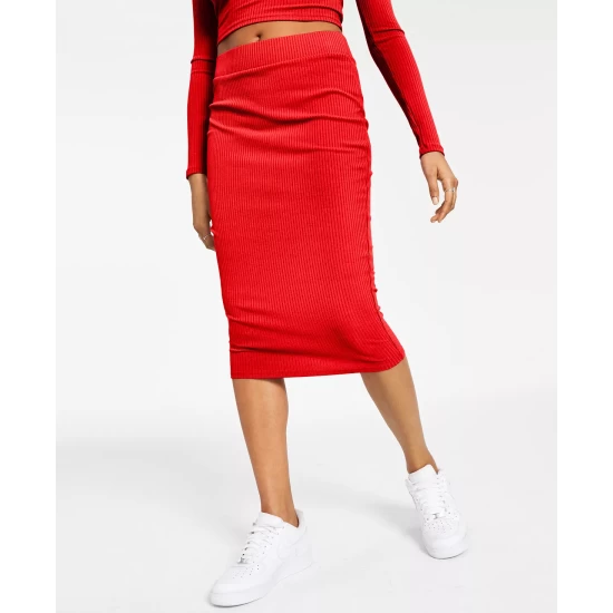 The midi of the moment. This Bar III skirt is a total wardrobe refresher with its ribbed knit and figure-flaunting silhouette.
