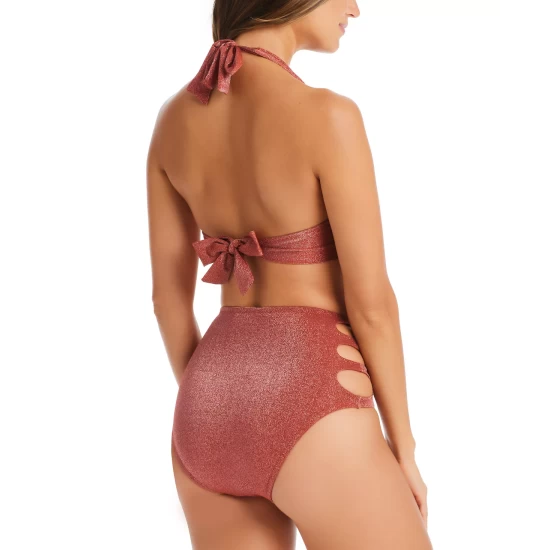 Get set to shimmer in the sun in this dazzling swim ensemble from Bar III, with a banded bikini top and matching high waist bottoms.