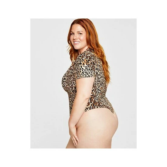 Animal print makes an impression on this chic plus size bodysuit from Bar III, a sleek way to keep your top tucked in and elevate your jeans.