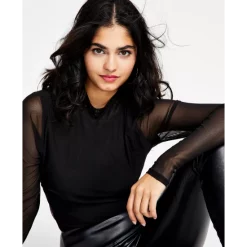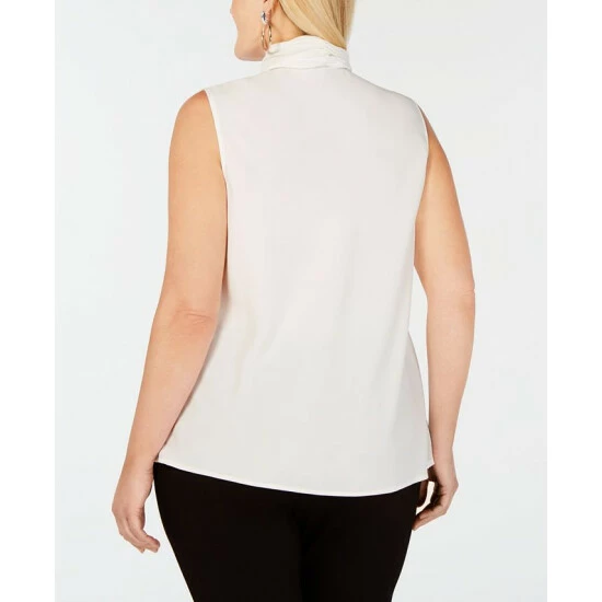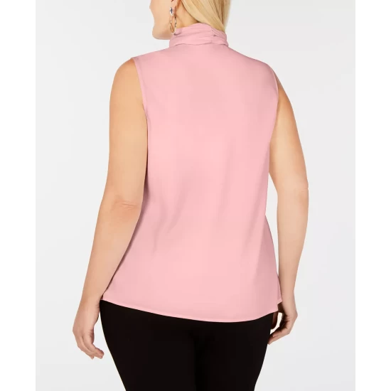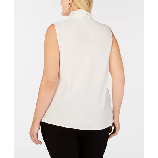 A classic tie details adds polished coverage to the neckline of this plus size sleeveless blouse from Bar III.