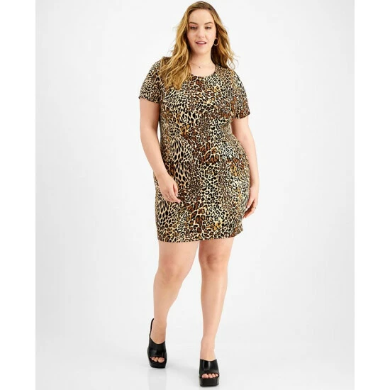 Fiercely fun, this plus size mini dress in cheetah-print stretch moss crepe is spotted for cute and comfortable style from Bar III.