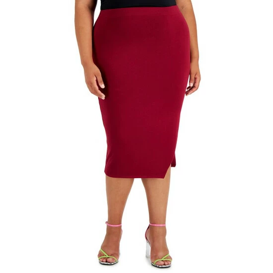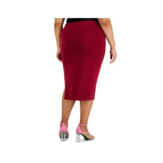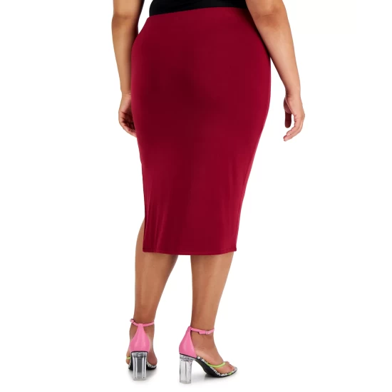 A versatile piece in stretch moss crepe, this Bar III plus size midi skirt features pull-on ease and a breezy side slit.