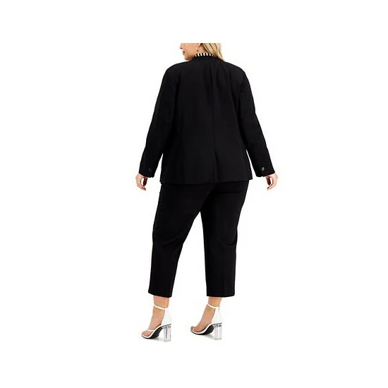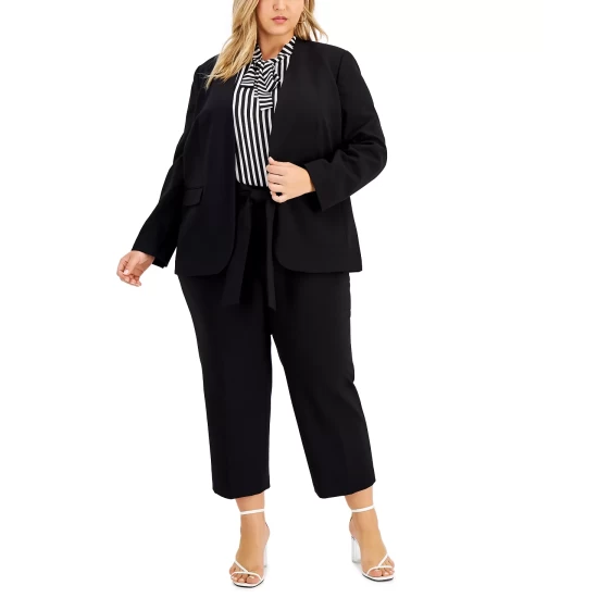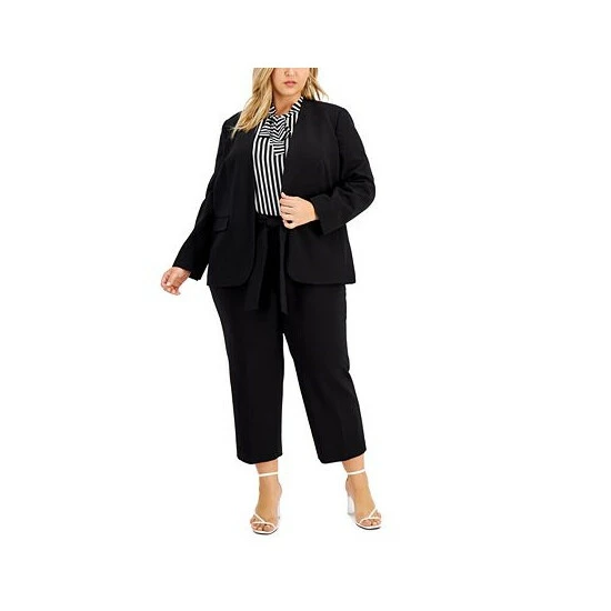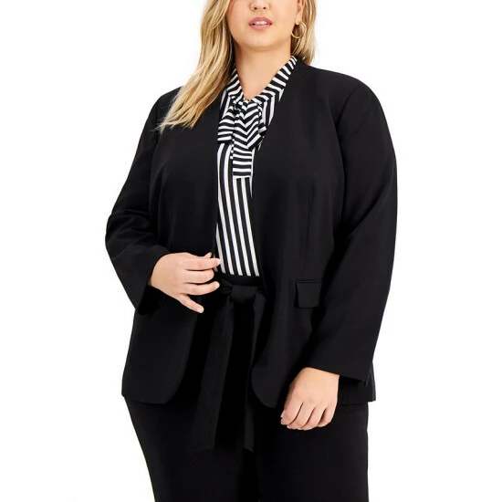 Fuss-free lines and an open silhouette flatter on this smart plus size blazer by Bar III. Shoulder pads structure the look for office-ready style.