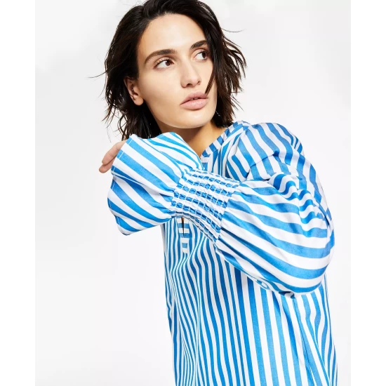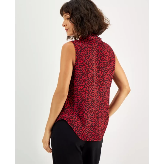Finished with a bow or flowing free, neckline tie ends accent the animal-print style and business-friendly look of this Bar III blouse.