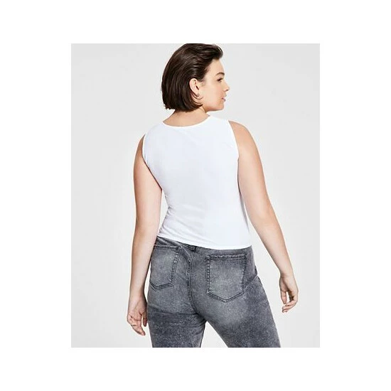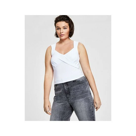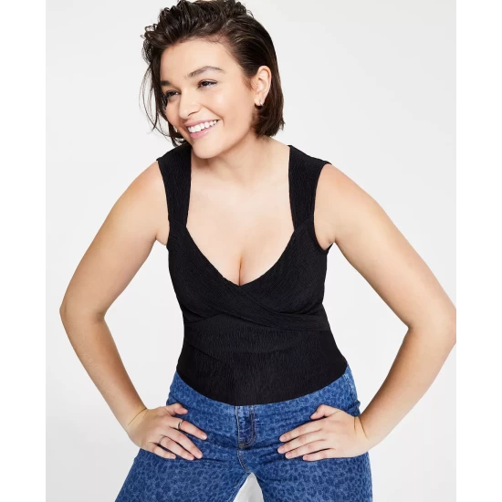 A bustier-style bodice with a crossover design brings chic style to this Bar III tank top.