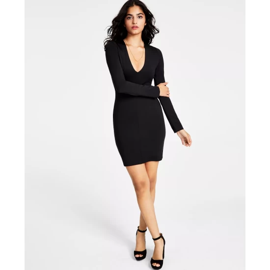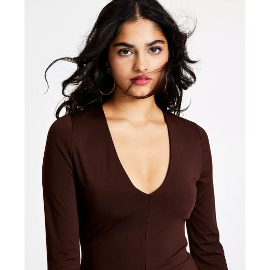 Bar III presents the ultimate bodycon silhouette with supportive, sculpting compression on this deep V-neck dress.