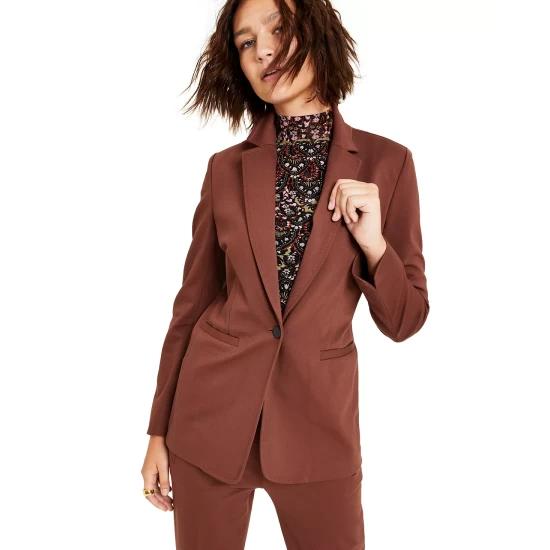 Bar III’s compression-knit blazer is unlined for weightless, effortless layering at work and beyond.