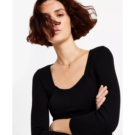 Bar III elevates a timeless look in this sleeveless crop top, with a crossover detail at the front waist.