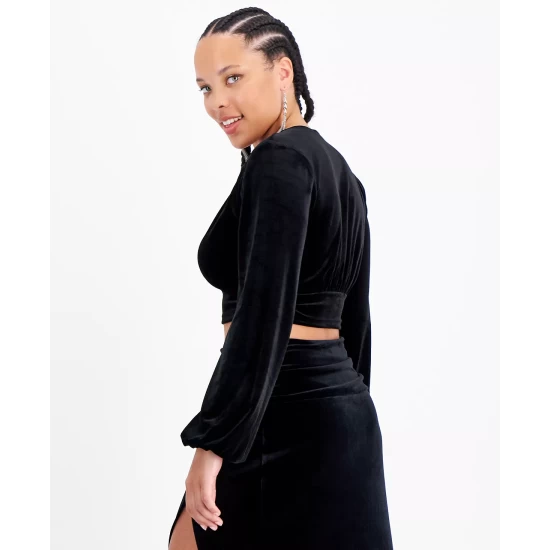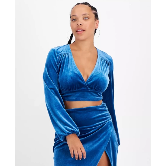 Soft to the touch, Bar III’s velvet cropped top pairs perfectly with a matching skirt or your favorite denim.