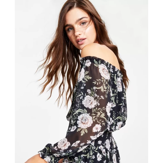 Here’s a stylish desk-to-dinner pick: Bar III’s floral-print off-the-shoulder dress.