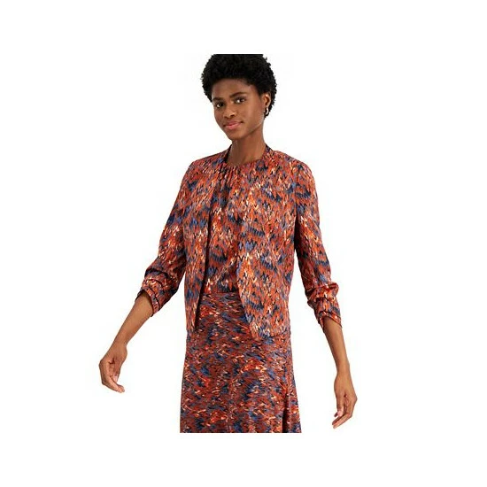 Bar III elevates your look with this ikat-print blazer, featuring scrunch sleeves that add sophisticated detail.