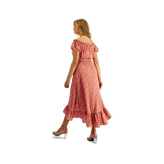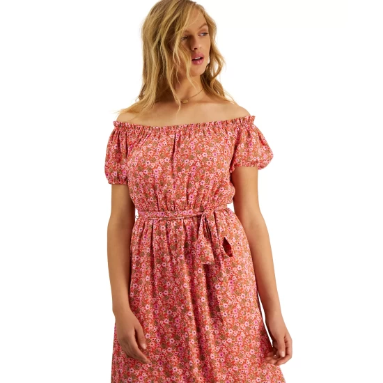 Va-va-voom! Get ready for a fun night out in this pretty, printed, off-the-shoulder maxi dress from Bar III.