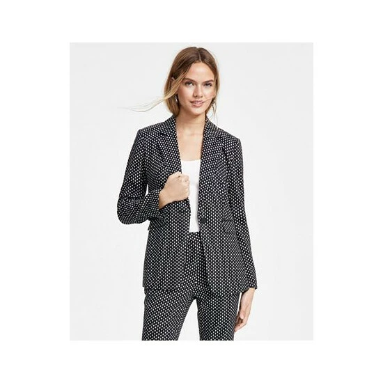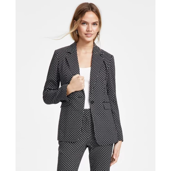 Diamond-patterned stretch jacquard fabric adds distinctive style to the classic career look of this one-button blazer from Bar III.