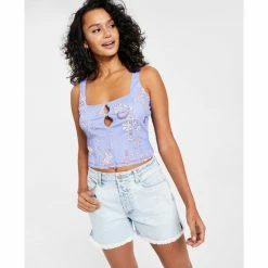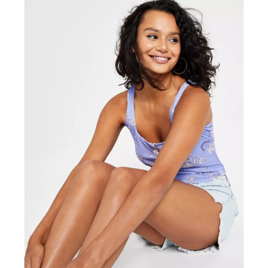 Cutouts lend a flirty look to this women’s mesh top from Bar III, featured in delicate floral prints.
