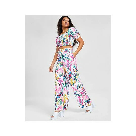 Bar III upgrades these comfortable wide leg pants with a bold and chic print.