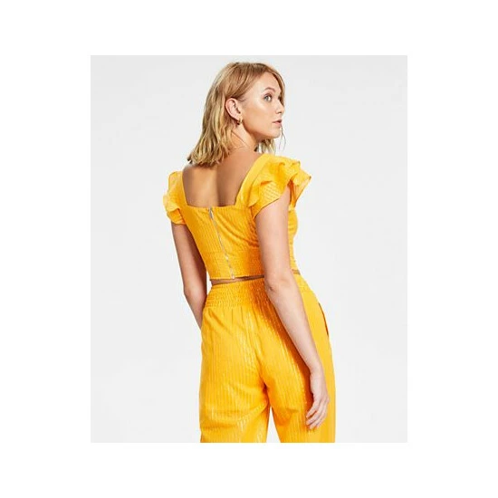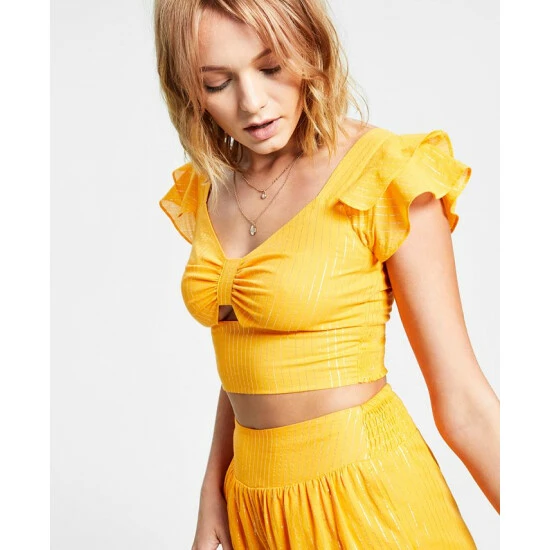 Delicate metallic stripes add a mega dose of glamour to this sweet cropped top from Bar III.