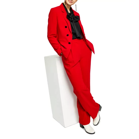 Suit up in style with Bar III’s faux double-breasted jacket.