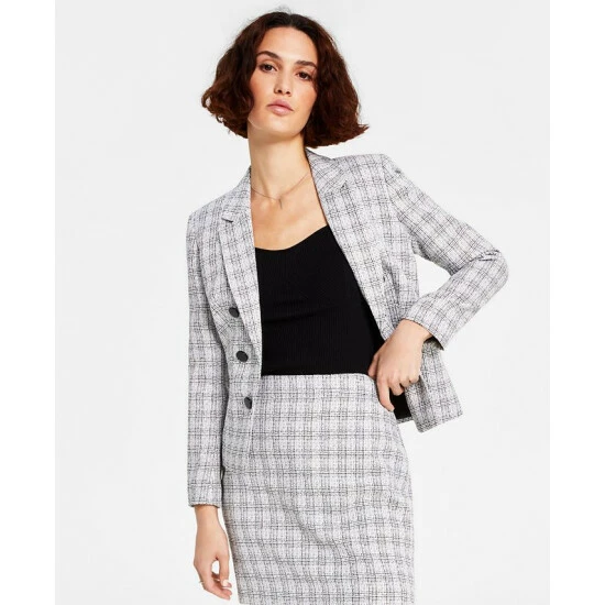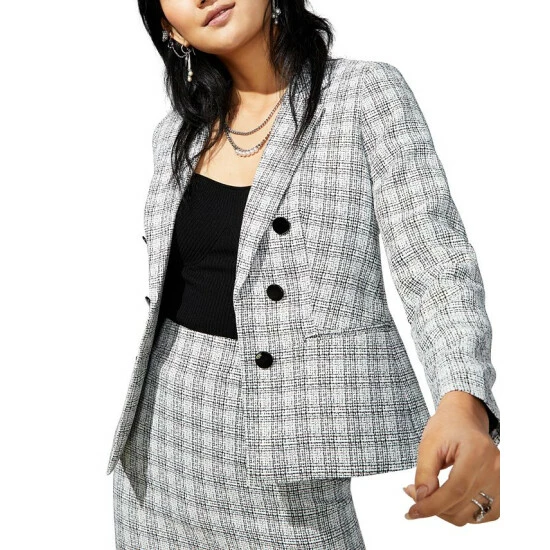 For a chic work look, Bar III presents this tweed faux double-breasted blazer, sure to be your new fave.