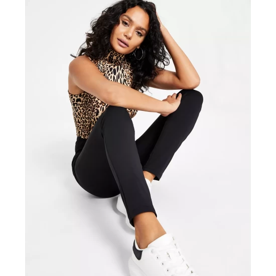One sophisticated piece that always looks good. This Bar III jumpsuit makes a statement in structured crepe with a flattering waist tie.