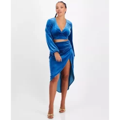 New โ Bar III ๐ฉ Women’s Matching Velvet Cropped Top & ๐ Skirt Set, Created For Macy’s Aqua Lake โ๏ธ